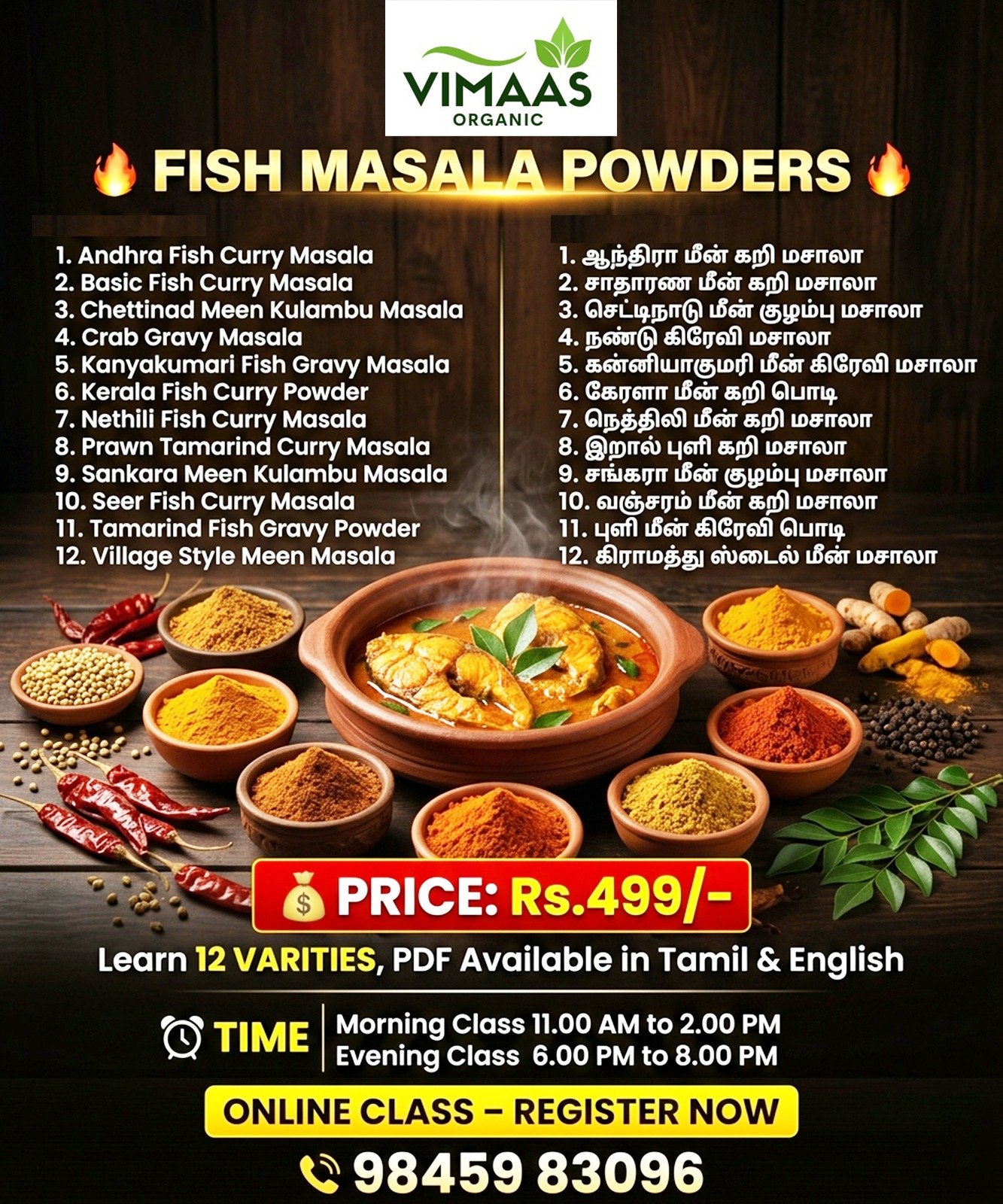 Discover the art of seasoning your fish dishes perfectly with our expertly crafted Fish Masala Powders Class. Learn how to combine spices for rich flavors and achieve an irresistible aroma that elevates every recipe.