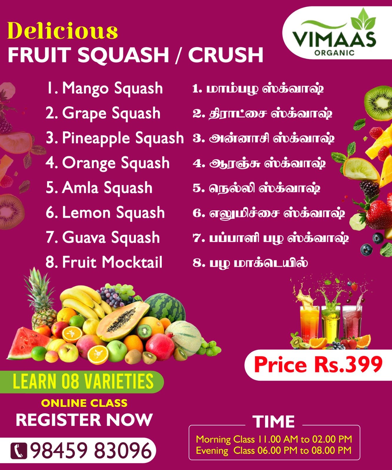 Transform the way you enjoy fruits with this Fruit Squash/Crush Class. Dive into a hands-on experience where you’ll learn to craft deliciously refreshing squashes from high-quality fruits. Ideal for anyone looking to elevate their beverage game and celebrate natural flavors.