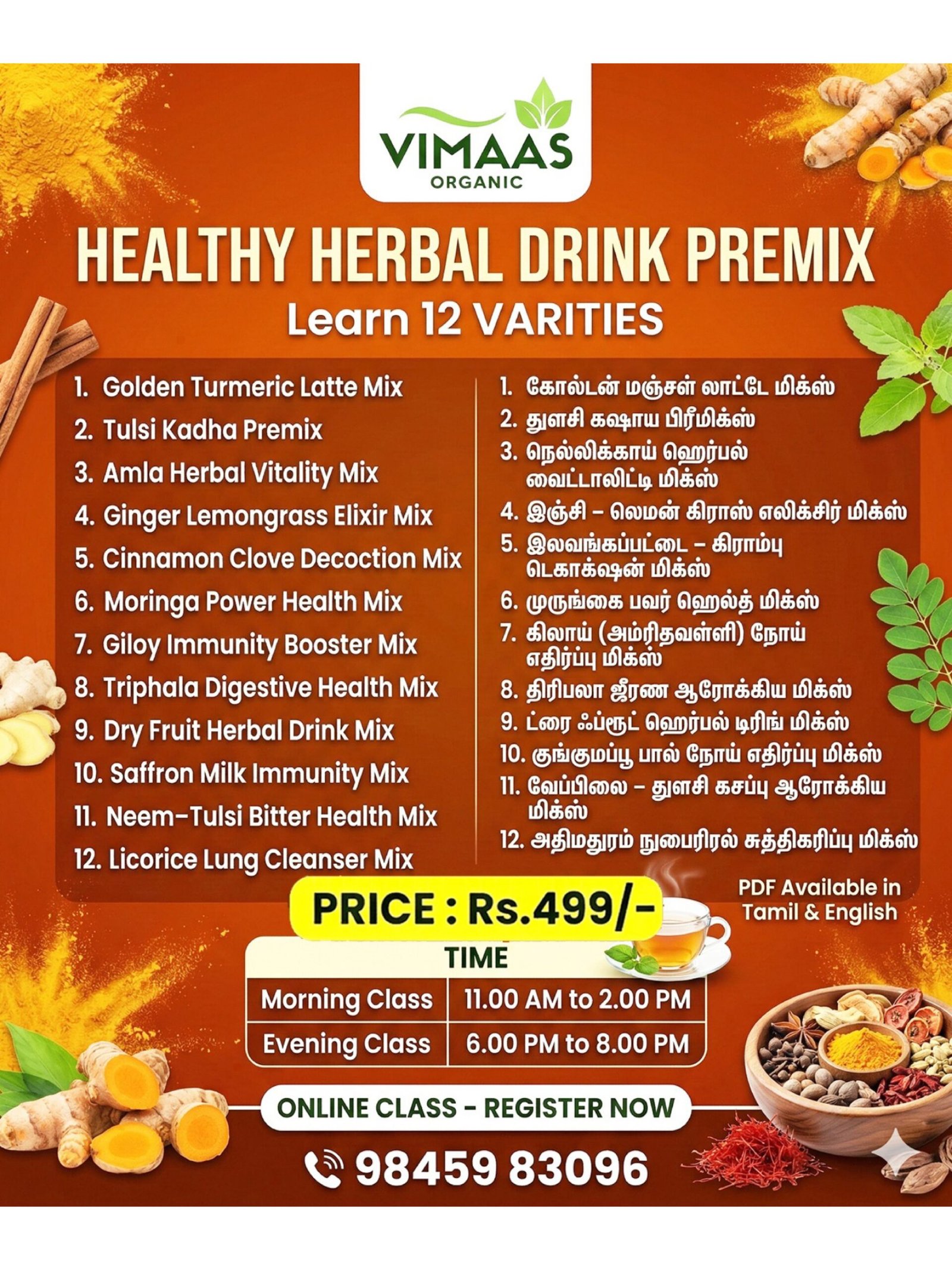 Unlock the potential of natural ingredients with our tailored Healthy Herbal Drink Premix Class. Designed for both beginners and enthusiasts, this unique workshop unveils the secrets of crafting nourishing beverages that promote overall well-being.