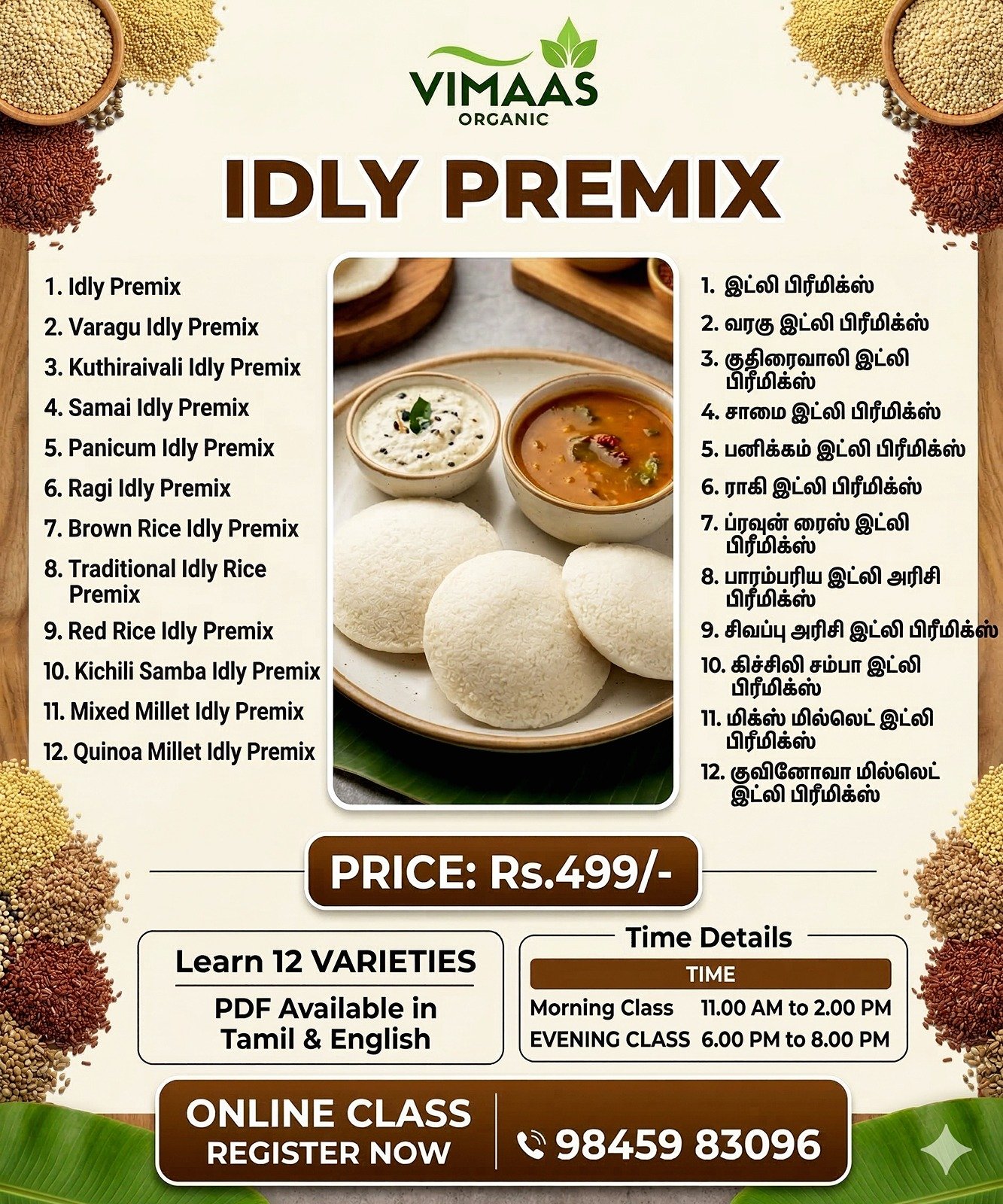 Say goodbye to complicated recipes and long preparation times. Our Idly Premix simplifies the process of making soft, fluffy idlies in just a few steps. Perfect for busy mornings or any meal of the day, this premix ensures that traditional taste blends with modern convenience.
