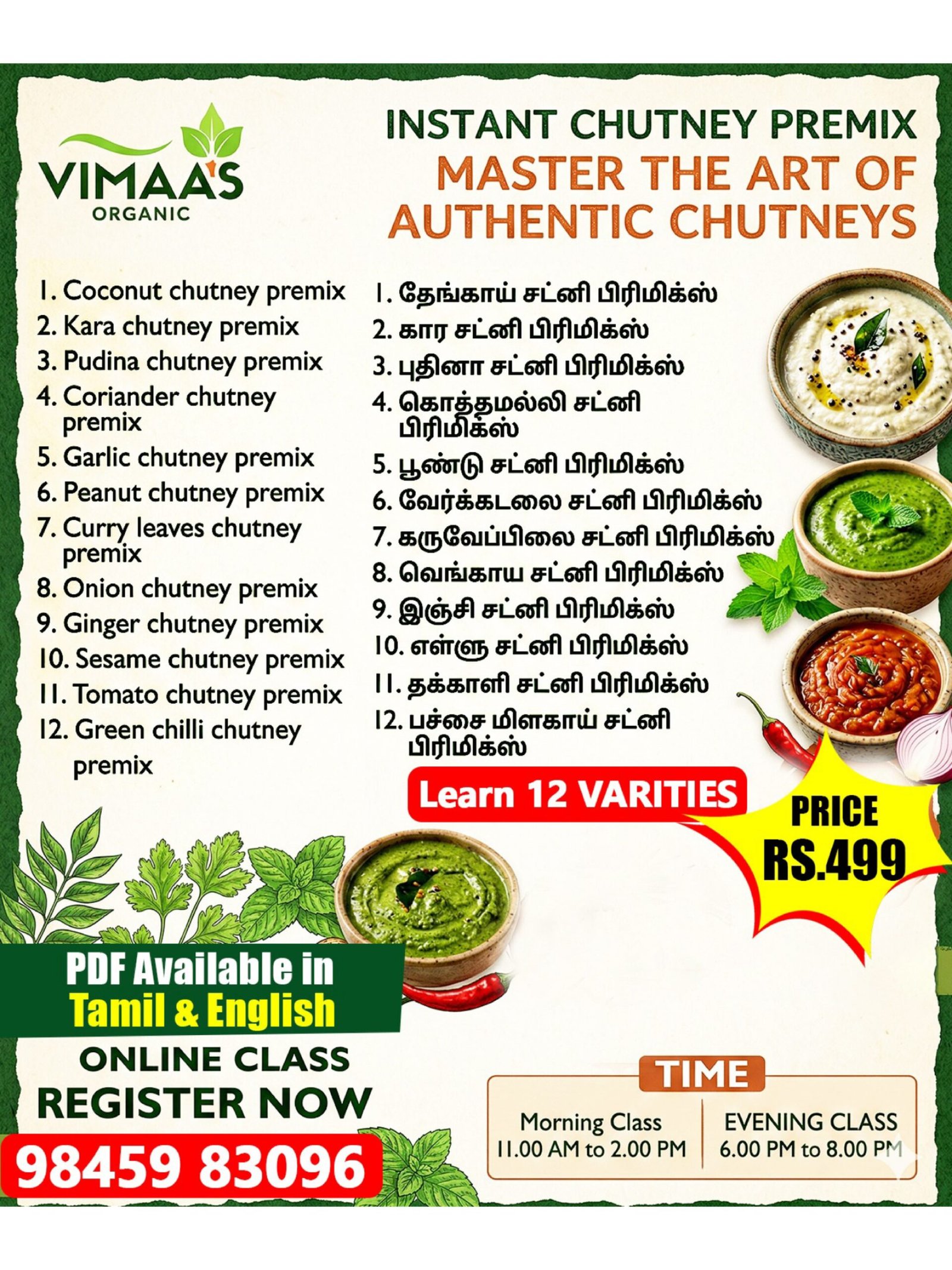 No prior experience is needed. Whether you’re a culinary novice or a seasoned cook looking to save time, this class simplifies the process while elevating your kitchen creativity. Embrace the convenience and taste innovation of instant chutney premixes!499