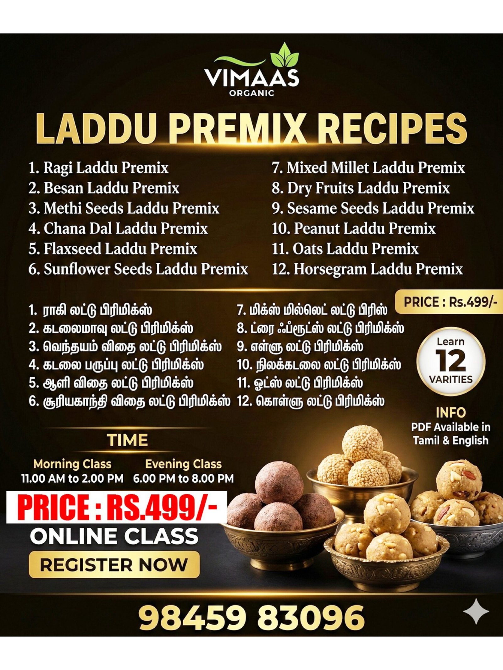 Save time and eliminate guesswork with our tried-and-tested premix methods that guarantee consistent results every time. Whether you’re making laddus for festive occasions or regular snacks, you’ll learn techniques that balance flavor, texture, and convenience effortlessly.