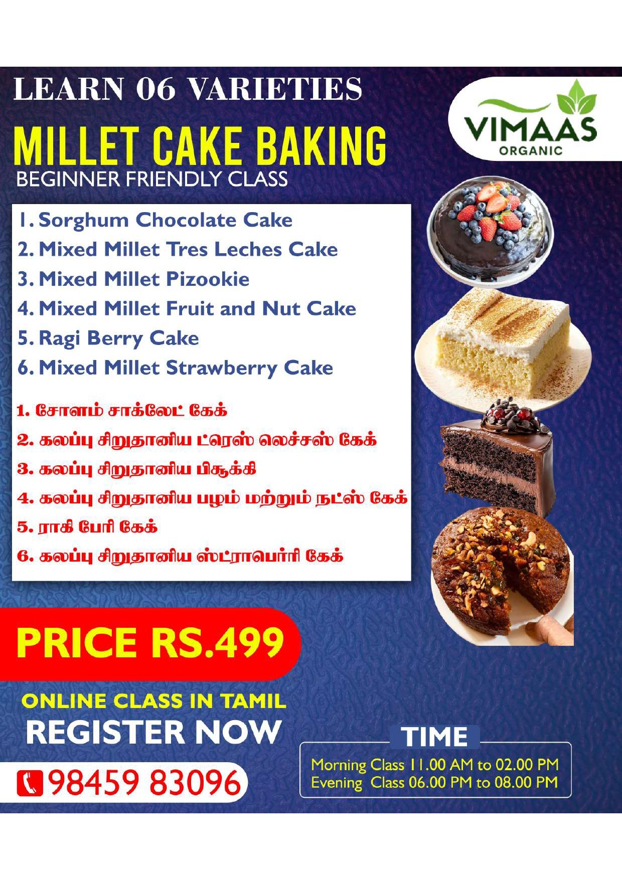 Unlock your culinary creativity with our Millet Cake Baking Class. This hands-on workshop is crafted for baking enthusiasts and health-conscious individuals alike, delivering a unique experience that combines flavor and nourishment. Learn how to master the art of baking cakes using wholesome millet, a versatile and nutritious alternative to traditional flours.